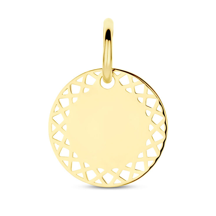 Deze gouden hanger is hoogglans afgewerkt en is verkrijgbaar in de afmetingen 12mm en 16mm.