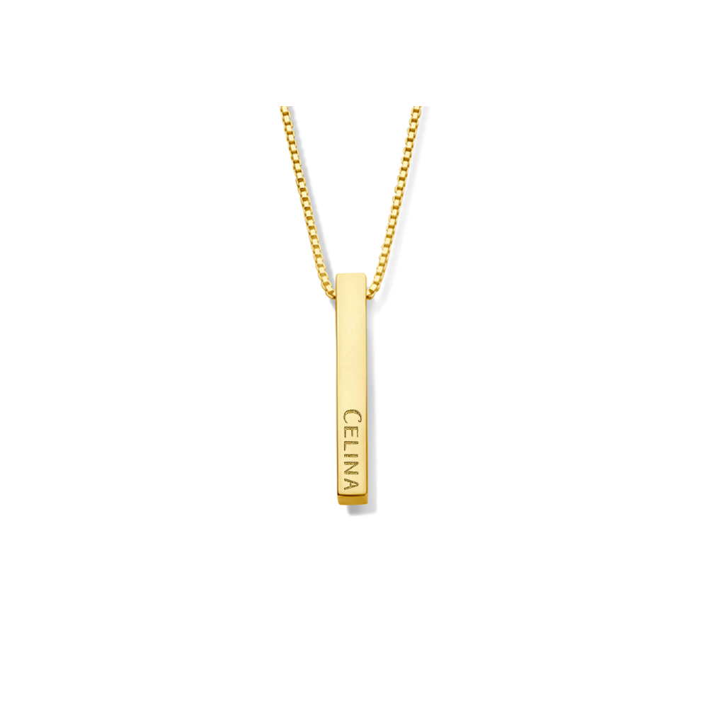 Prachtige gouden namebar ketting. De afmetingen van het plaatje zijn: 30x4mm. Door de grootte van het plaatje is deze prima geschikt hier een naam op te graveren.