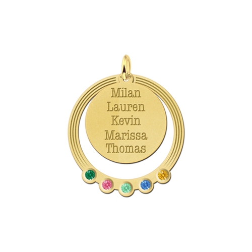 Ketting hanger twee losse rondjes en geboortestenen Goud