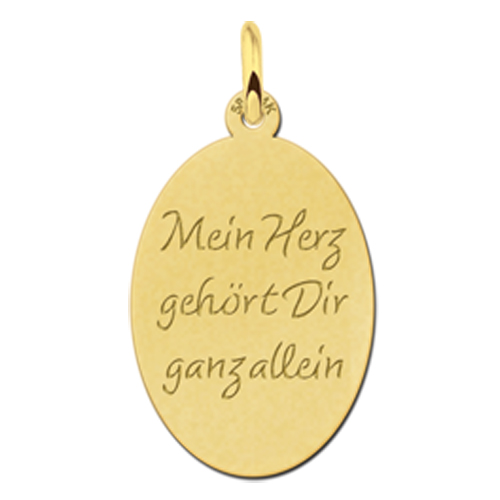Maak uw eigen ketting hanger nu bij ons. Op dit ovalen gouden ketting hanger kunt u uw eigen tekst graveren.