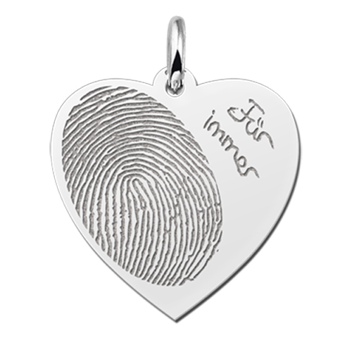 Zilveren Harthanger met vingerafdruk en eigen tekst Names4ever