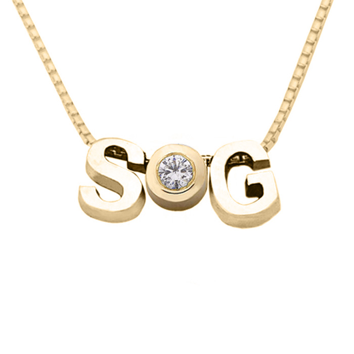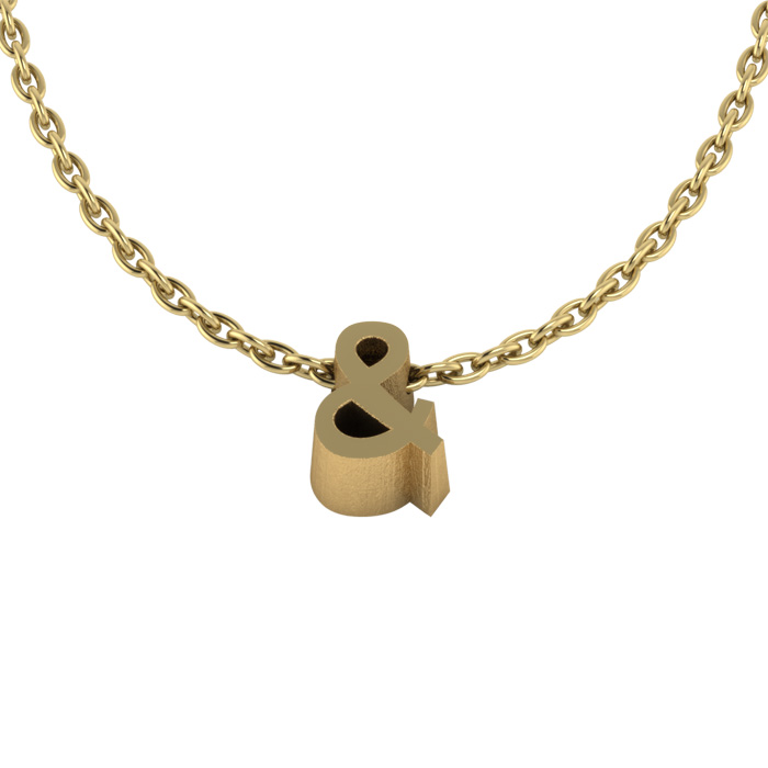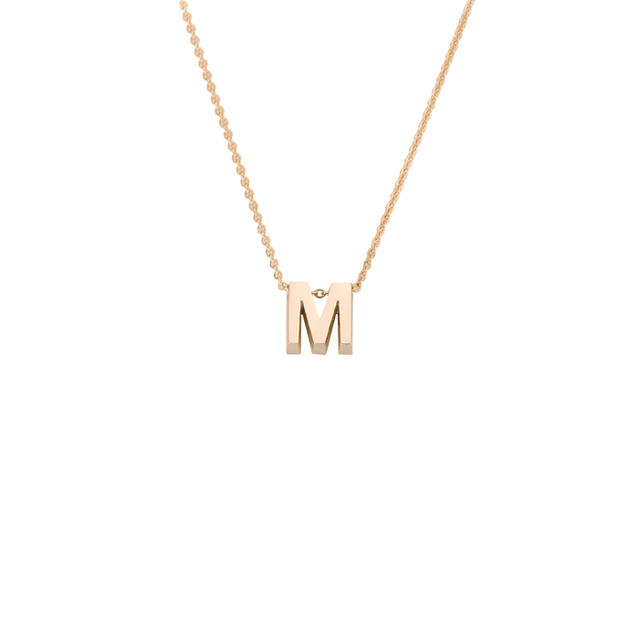 De hanger, in een letter of symbool naar keuze, is 5,5 millimeter groot en heeft een dikte van 2,5mm en is gemaakt van 14K massief goud. De hanger is leverbaar in geel-, wit, - of roodgoud of een combinatie hiervan. De voorzijde van de letter is hoogglans en de zij- achterkant van de letter is gematteerd. Het is mogelijk om maximaal 4 letters en/of symbolen te combineren.