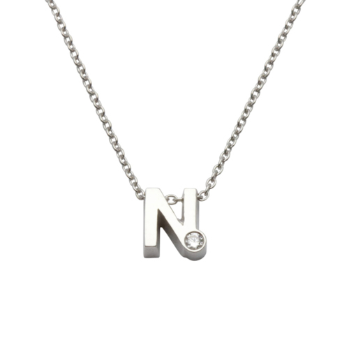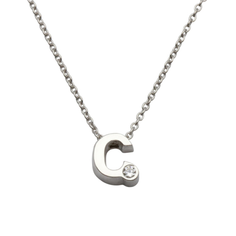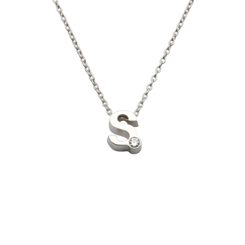 Initial ketting zilver met zirkonia
