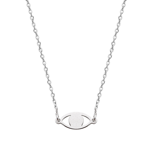 Kettink met een eye bedeltje. In het eye bedeltje kunt u een letter naar keuze laten graveren. Het kettinkje met letter is verstaalbaar en is leverbaar in zilver en gold plated. De ketting is 40cm lang.