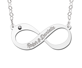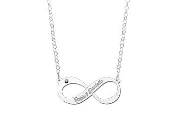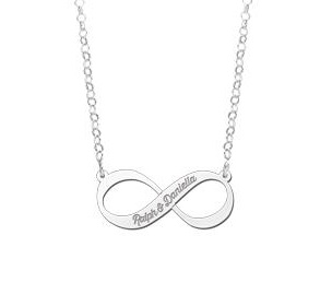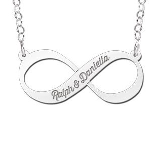 Deze prachtige zilveren hanger is het ultieme symbool voor een eeuwige verbintenis. De hanger heeft de vorm van het infinity teken, dat al eeuwen staat voor oneindigheid in zowel vorm als betekenis. Maar het symboliseert ook vernieuwing, harmonie, verbondenheid en evenwicht. In deze bijzondere zilveren hanger graveren wij uw tekst (maximaal 16 tekens) in een sierlijk lettertype. Kies bijvoorbeeld voor de namen van u en uw geliefde, de naam van uw kind of een andere persoonlijke tekst.