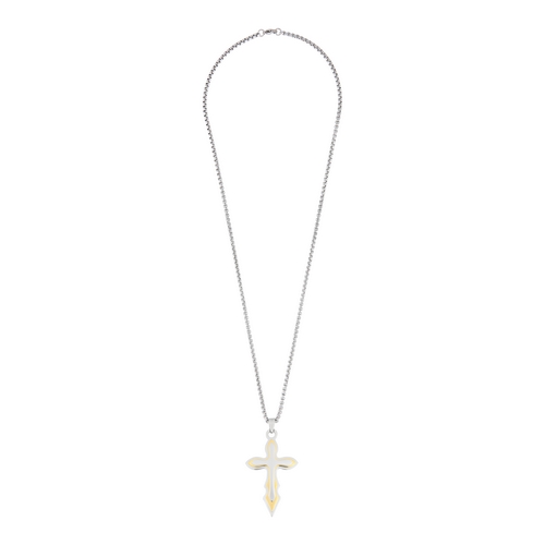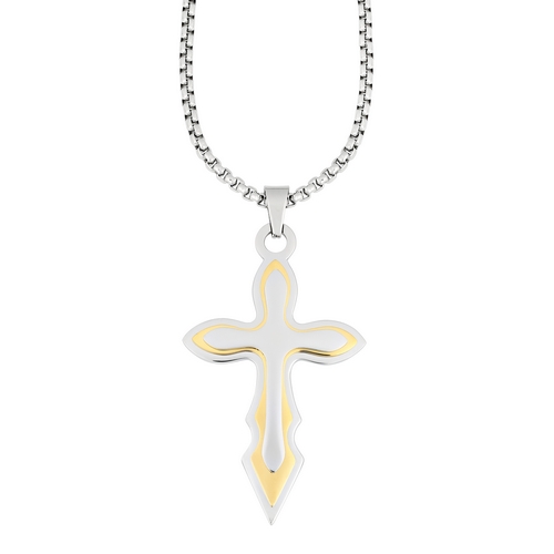 Ketting Kruis Pendant ketting zilver/goud. Deze roestvrij stalen ketting met zilver en goud kleurig kruis is hoogglans afgewerkt. De lengte van de ketting is 60 cm en de grootte van de hanger is 3,6 x 6 x 0,34 cm.