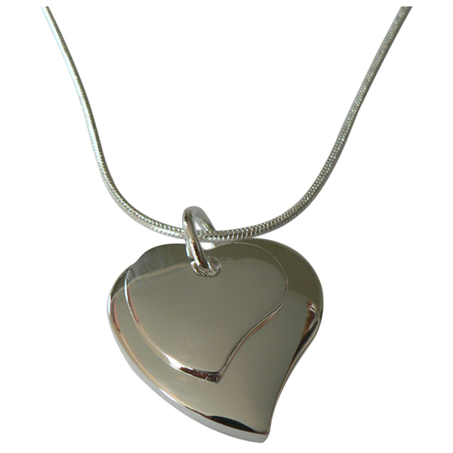 Set van twee hartvormige verzilverde bedels. Op beide bedeltjes kan een naam, een woord of een datum gegraveerd worden. De tekst voeg je eenvoudig toe in de vervolgstappen.