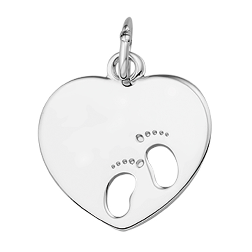 Hoogglans zilveren hart hanger met gestanste voetjes