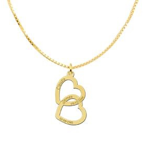 Deze mooie bedel heeft twee gouden harten, met een totale afmeting van 30x18mm. Het sieraad is vervaardigd van 14 karaats massief goud.