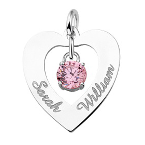 Deze mooie bedel heeft ruimte voor 2 namen en bevat een Zirkonia van 6mm in het midden. De hnager is 23x20mm groot.