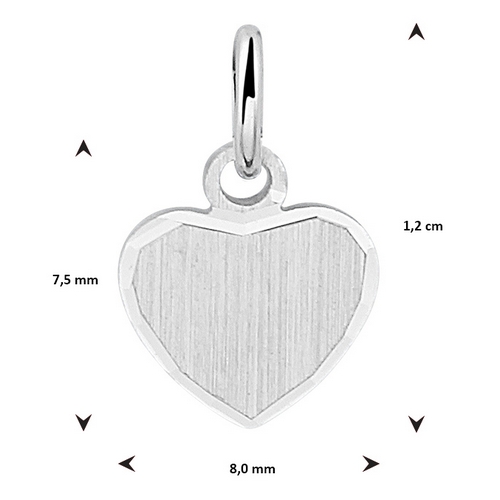 Dit is een zilveren hartvormige hanger met een matte en gediamanteerde afwerking. Het hartje heeft een totale hoogte van 1.2 cm en een breedte van 8 mm. U kunt de hanger laten graveren met een initiaal aan de voor en/of achterzijde. De hanger is van gerhodineerd 925 zilver.