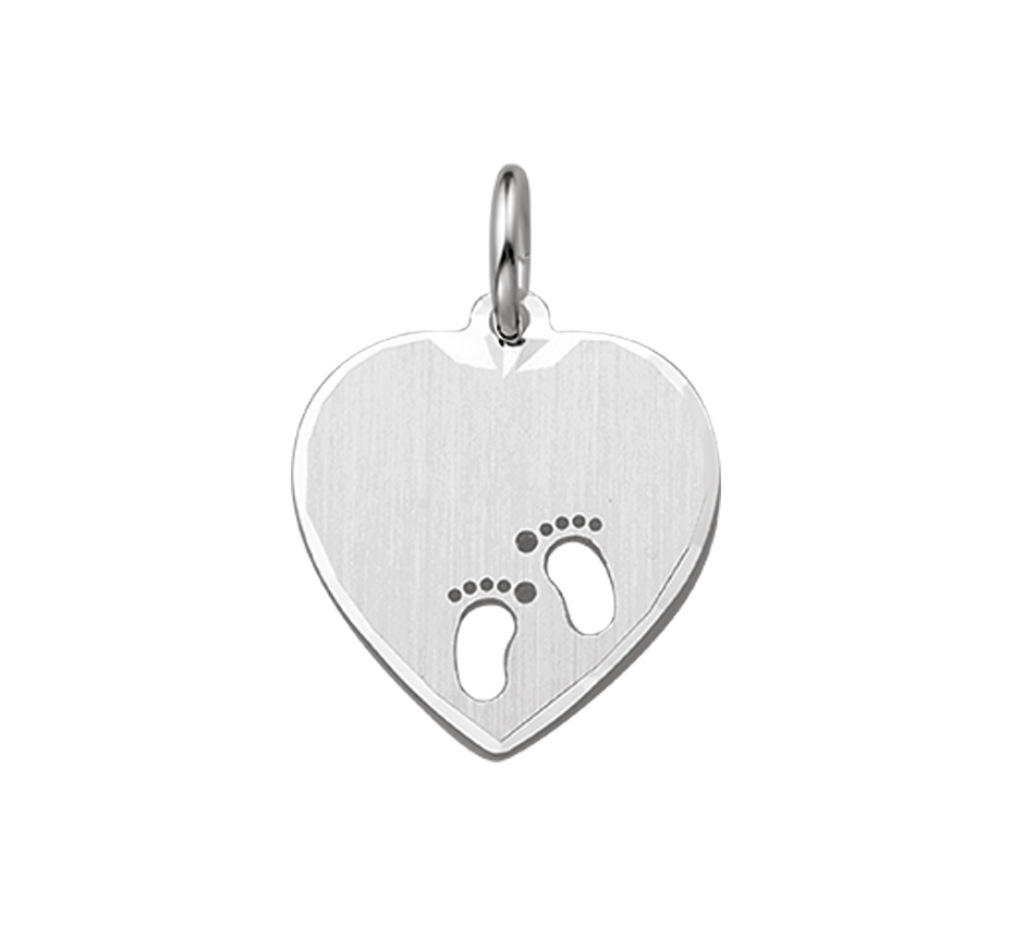 Zilveren hart hanger met gestanste voetjes