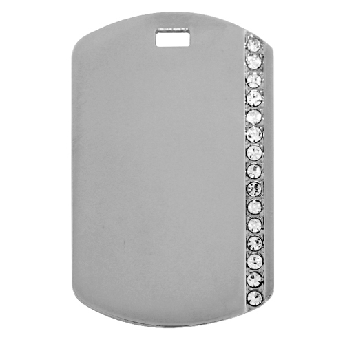 Deze zilverkleurige ID hanger is weer eens wat anders door de 15 mooie steentjes aan de rechterzijde. Deze chique ID hanger is 25x39mm groot en wordt naar wens gegraveerd. Wij graveren gratis een tekst aan de voorzijde en achterzijde. Kies hier een mooi lettertype uit.