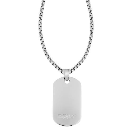 Deze Zippo Pendant ketting is een roestvrij stalen ketting in legerlook. De lengte van de ketting is 60 cm en de grootte van de hanger is 2,3 x 4,1 x 0,2 cm. Zowel de ketting als de hanger hebben een hoogglans afwerking.