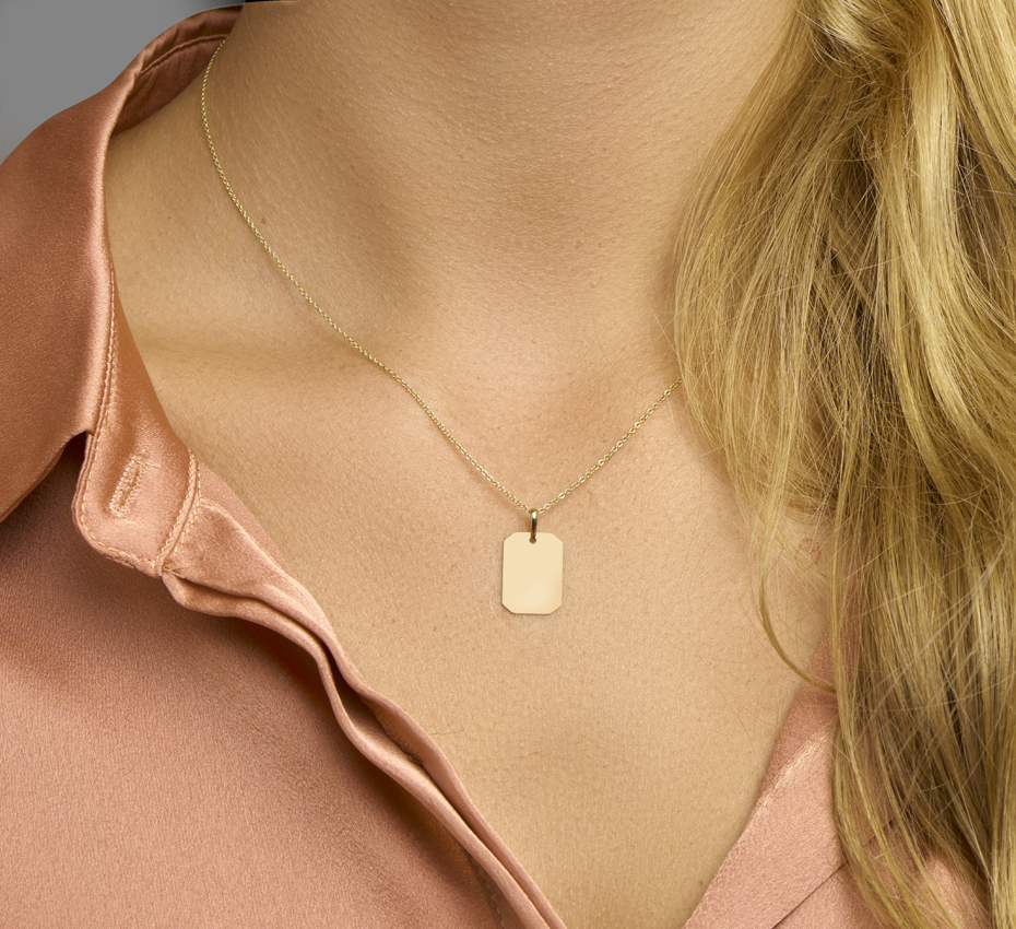 De perfecte details maken deze rechthoekige ketting hanger enorm gewild! De massieve 14 karaats gouden hanger is hoogglans afgewerkt en de afgeschuinde hoeken maken de vorm achtkantig.