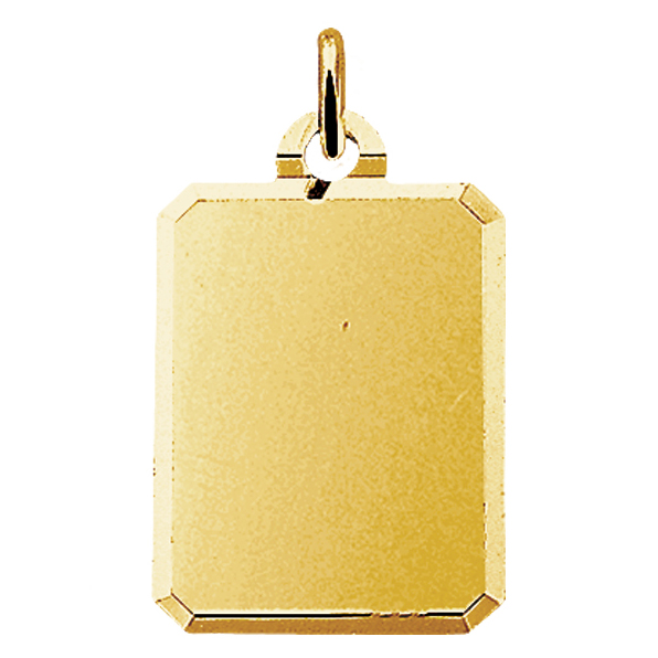 De rechthoekige vorm van deze mooie gouden ketting hanger, in combinatie met het formaat van 15x20mm of 18x20mm, maken dat deze hanger erg geschikt is voor het graveren van een korte tekst, korte namen of cijfercombinatie(s) aan voorzijde en achterzijde! U heeft hierbij de keuze uit een standaard rechte letter en een sierlijke schrijfletter. De hanger is vervaardigd uit 14 karaats geelgoud.