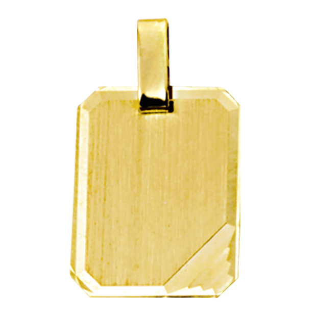 Prachtige 14 karaats geelgouden graveerhanger van 14x18mm. De binnenkant van deze bedel is mat afgewerkt, met een glanzende omlijning voor een elegant effect. Rechts onderin is de hanger voorzien van schuine lijnen. Bij sieraadgraveren.nl krijgt u de mogelijkheid tot het gratis graveren van een korte tekst, naam of cijfercombinatie! U heeft hierbij de keuze uit een standaard rechte letter of sierlijke schrijfletter.