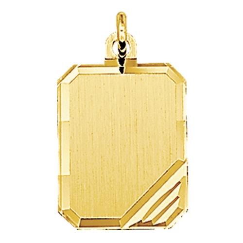 Gouden hanger van 14 karaats geelgoud met een rechthoekige vorm en afgeschuinde hoeken. De massieve hanger heeft een matte binnenkant, omrand met een glanzende lijn. Daarnaast hebben wij rechts onderin drie bijpassende diagonale lijnen toegevoegd voor een elegant effect.