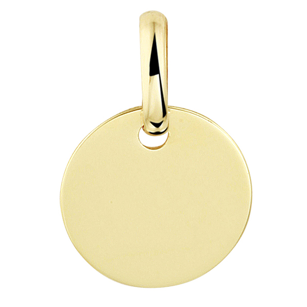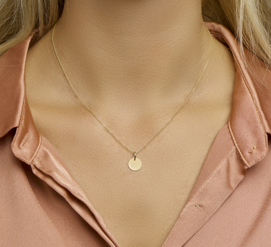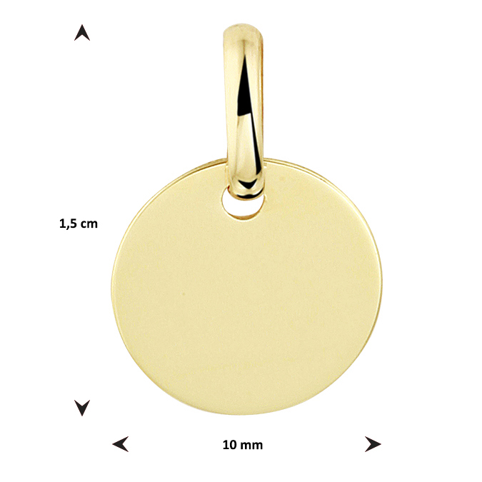 Geelgouden graveerrondje met een diameter van 10mm en een dikte van 0,5mm. Inclusief hangeroog is deze hanger 15mm hoog. De hanger is gemaakt van 14 karaats goud en is hoogglans afgewerkt. Laat de gouden hanger graveren met een tekst, een logo of een lijntekening naar keuze. De tekst voeg je toe in de vervolgstappen. Kies hier een leuk lettertype uit. Een logo of tekening graveren in de gouden hanger? De afbeelding upload je eenvoudig in de volgende stappen.
