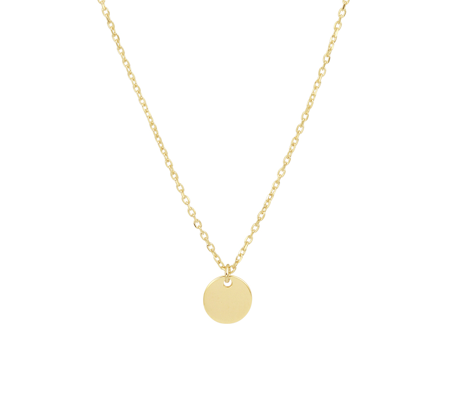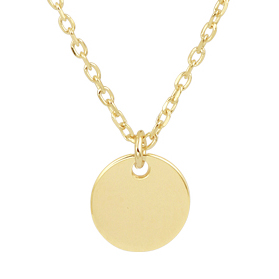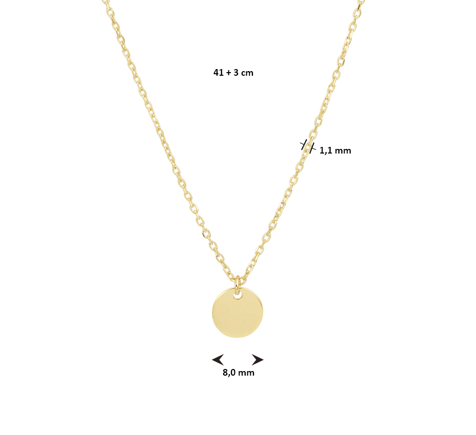 Ronde 14 karaats gouden ketting hanger in de afmeting 8mm. De ankerketting is 41 cm lang en te verstellen tot 44 cm. De hanger is te graveren met een initiaal aan de voor- en /of achterzijde.