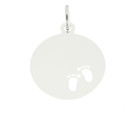 Deze ronde ketting hanger met voetjes kan een prachtig symbool zijn voor een pasgeboren kind, gegraveerd met zijn of haar naam! Deze zilveren ronde hanger met twee uitgesneden voetjes heeft een formaat van 18mm en is vervaardigd uit 925 sterling zilver. Dit garandeert u van optimale kwaliteit!