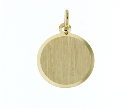 Ronde 14 karaats gouden ketting hanger in de afmeting 12mm, 14mm of 16mm. De hanger heeft een geborsteld matte afwerking met een hoogglans rand rondom.
