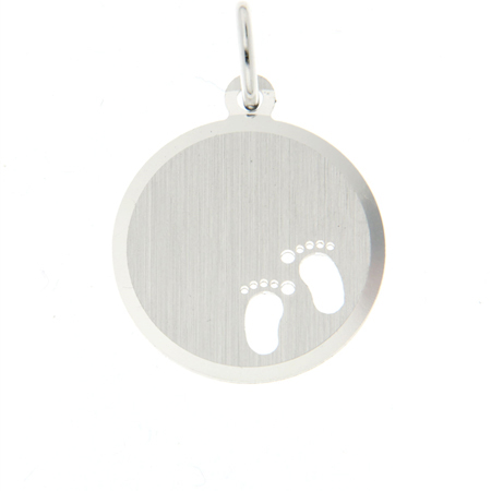 Deze ronde ketting hanger met voetjes kan een prachtig symbool zijn voor een pasgeboren kind, gegraveerd met zijn of haar naam! Deze zilveren ronde hanger met twee uitgesneden voetjes heeft een formaat van 16mm en is vervaardigd uit 925 sterling zilver. Dit garandeert u van optimale kwaliteit!