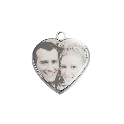 Ketting met fotohanger in de kleur zilver of goud. Laat uw eigen foto graveren in deze hartvormige hanger van 22x24mm. De foto graveren wij in de hanger met een fijne diamantfrees. Aan de achterzijde van de hanger kunt u een persoonlijke tekst naar keuze laten graveren. Klik hier om een lettertype uit te kiezen. De foto en de tekst kunt u eenvoudig toevoegen in de vervolgstappen.