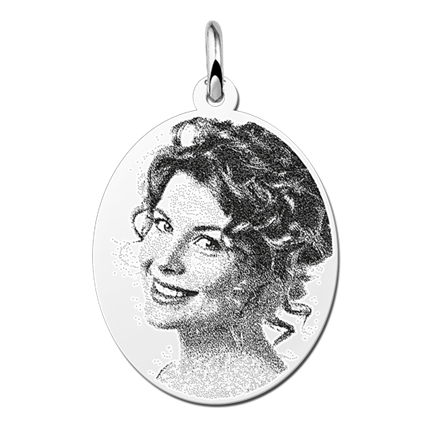 Ovaal hangertje met foto. Aan de achterzijde van de hanger kunt u eventueel een persoonlijke tekst laten graveren. Wanneer u kiest voor een tekst, bieden wij u de mogelijkheid uit verschillende lettertypes te kiezen, zodat uw smaak tot zijn recht komt op deze hanger. De foto hanger is vervaardigd van 925 sterling zilver wat zorgt voor een optimale kwaliteit. De hanger is verkrijgbaar in diverse afmetingen.