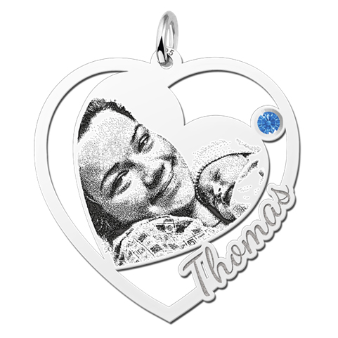Zilveren hart hanger met foto en geboortesteen