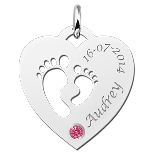 Geboortesteen in zilveren hart voetjes Names4ever