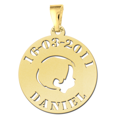 Gouden hanger babyhoofdje jongen naam en datum Names4ever