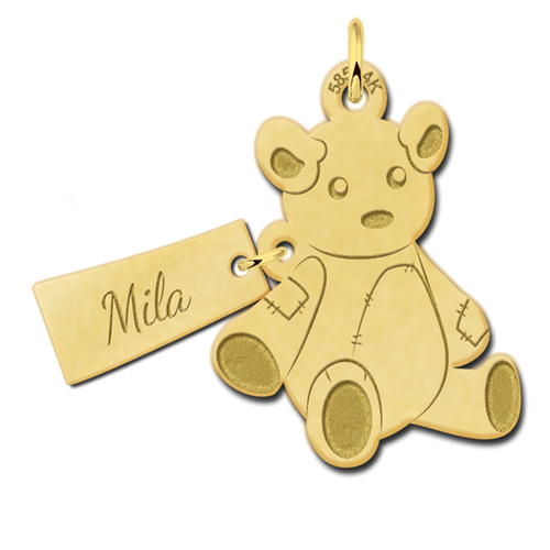 Deze gouden hanger met een kleine beer is perfect om cadeau te geven bij kraamvisite.