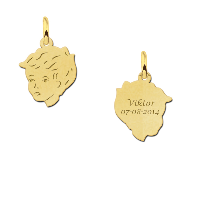 Gouden jongens kinderkopje met achterkant gravure klein Names4ever