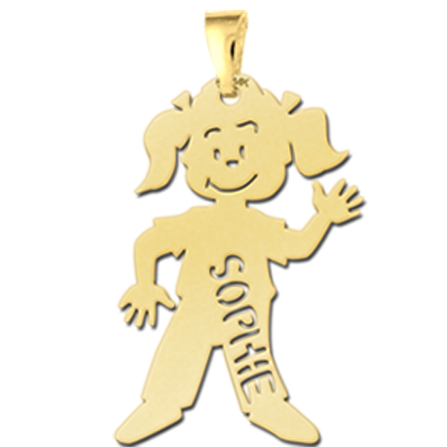 Gouden mama sieraad meisje in de vorm van een lief meisje met een naam gravure.