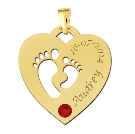 Vergulden hart met voetjes en geboortesteen