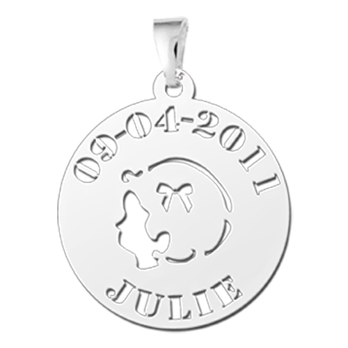 Zilveren babyhanger hoofdje meisje naam en datum Names4ever