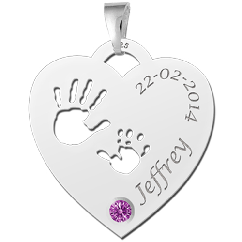 Zilveren hanger met geboortesteen en handjes Names4ever