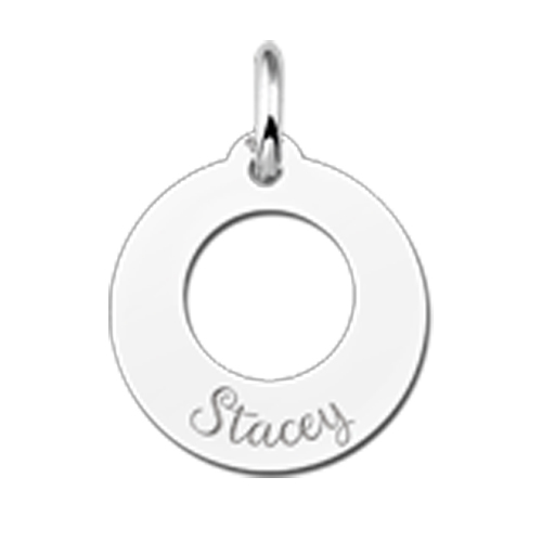 Deze kleine ronde hanger met naam is perfect om te hangen aan een ketting of armband.