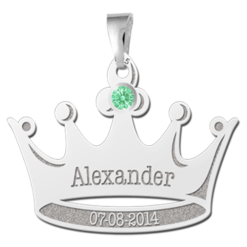 Een kettinghanger met een zilveren kroon met daarop uw gepersonaliseerde gravure.