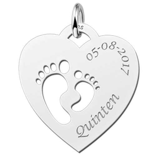 Dit zilveren mama sieraad heeft de vorm van een hartje met daarin 2 uitgesneden baby voetjes.