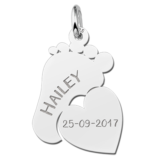 Een leuk sieraad met een voetje en een hart. Door uw eigen persoonlijke gravure, maakt u uw sieraad echt naar uw eigen smaak.