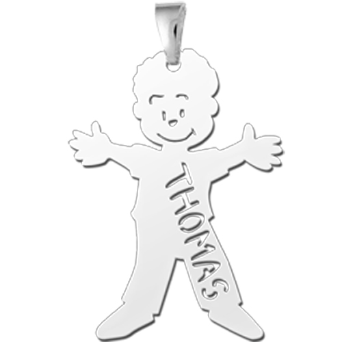 Zilveren mama sieraad in de vorm van een schattige jongen met een naam gravure.