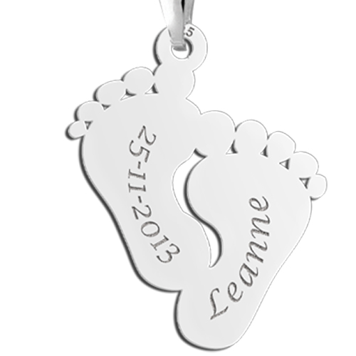 Een mama ketting van twee voetjes met daarop de gewenste gravure.