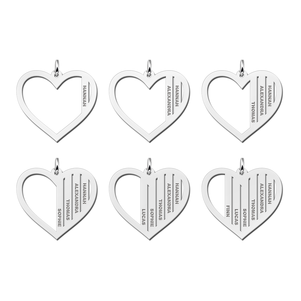 Zilveren familiehanger hart en namen
