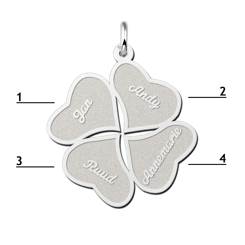 Zilveren klavertje vier hanger met vier namen