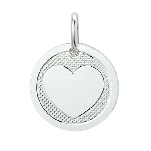 Ronde zilveren hanger met hartjes bedel in de vorm van een rondje met een diameter van 14mm. Laat de ronde hanger graveren met een initiaal naar keuze op de voorzijde, dit kan in een sierlijke schrijfletter en een rechte letter.