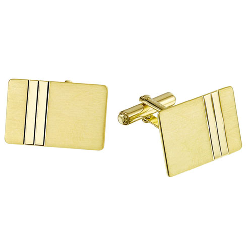 Set rechthoekige 14 karaats gouden manchetknopen van 20x13mm. De manchetknopen hebben een mat afgewerkte look met een sierlijke rand erin. De manchetknopen zijn te bestellen samen met de bijbehorende dasschuif.