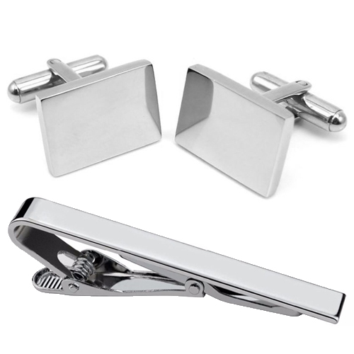 Kies voor stijl met deze chique set manchetknopen en dasspeld in hoogglans. De combinatie van glanzend metaal en moderne, strakke afwerking zorgt voor een stijlvolle look bij iedere formele outfit. Laat de dasspeld en manchetknopen graveren met uw initialen, de naam van uw partner of een andere korte tekst voor een persoonlijke touch die deze set gegarandeerd uniek maakt. Zeer geschikt voor een bruiloft of als relatiegeschenk.