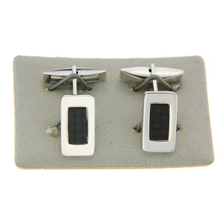 Set van twee rechthoekige zilveren manchetknopen met een carbonlook vak in het midden. Door de carbonlook afwerking zijn deze manchetknopen helaas niet geschikt om te laten graveren. Deze manchetknopen zijn uit voorraad leverbaar.